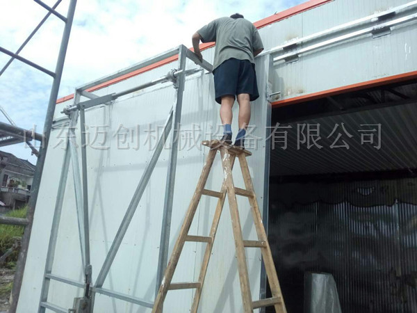 3、定时开启冷风进口,要注意同时开启冷风口和排潮口时注意冷风口的进风量避免过大造成烘干房内温差过大。